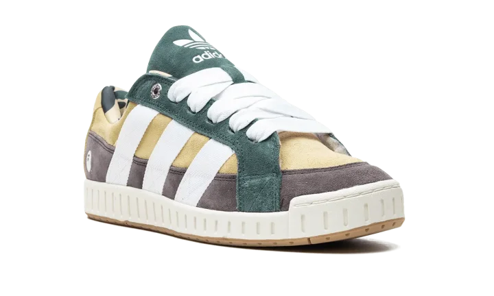 The BAPE x adidas N "Sand" is a collaboration by the popular Japanese streetwear brand and adidas on the lifestyle shoe. The BAPE x adidas N Pack celebrates the brands' storied partnership. Available in "Shadow Green" and "Sand," the adidas N by BAPE has an early 2000s-era skate shoe design. Specifically, the shoe's upper is complete with a Sand and Brown suede construction. Oversized white nylon Three Stripes branding appears on both sides, while BAPE's signature camo motif appears in the sock liner. A debossed APE HEAD is seen on the lateral side of the heel, while a BAPE STA logo appears on the back of the shoe. A discrete stash pocket can be found on the underside of the tongue and provides storage for small items.