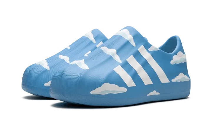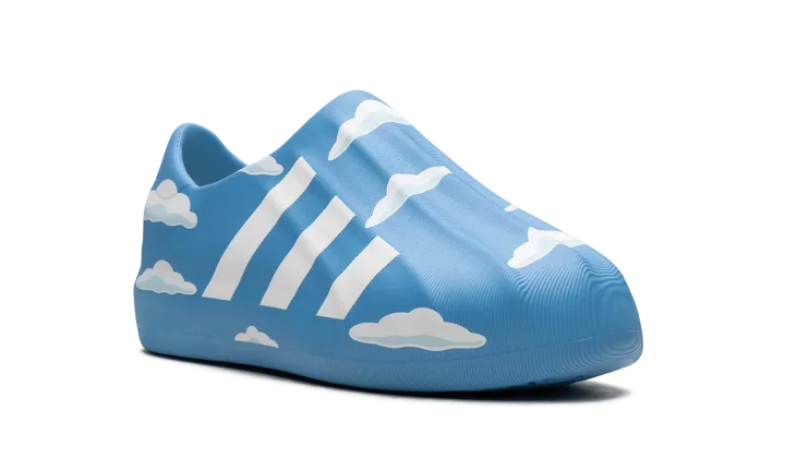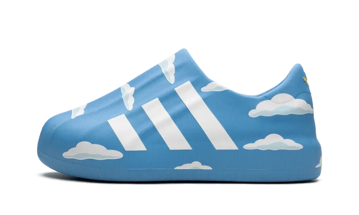 The ADIFOM Superstar LOW 'The Simpsons - Clouds' shoe features a unique Adifom construction, blending classic Adidas Superstar style with a playful design inspired by The Simpsons' clouds, offering a distinct and whimsical aesthetic.