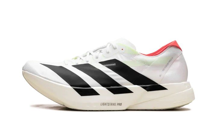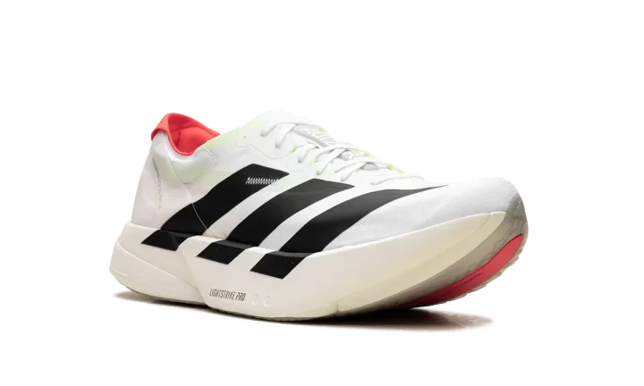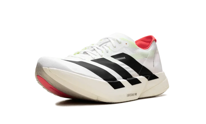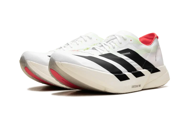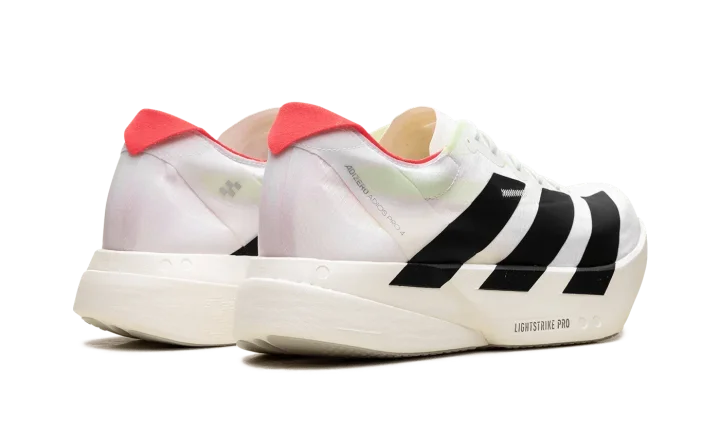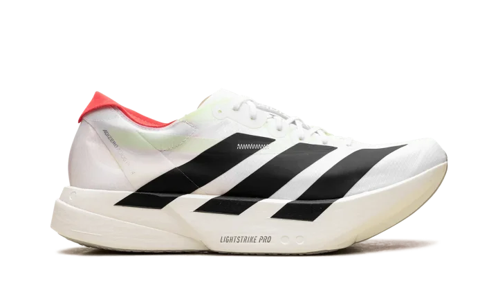 Step into a new era of speed with the Adidas Adizero Adios Pro 4 "White / Black / Red". This elite running shoe features advanced Lightstrike Pro foam and ENERGYRODS for exceptional propulsion and cushioning. The lightweight, breathable upper provides a secure fit, making it a powerful choice for runners aiming to break personal bests.