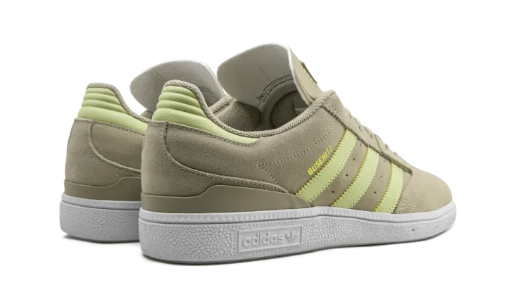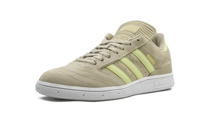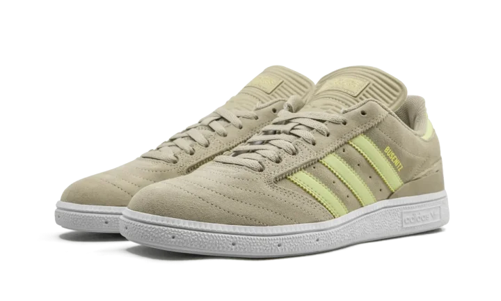 The adidas Busenitz is a skateboarding sneaker that's influenced by a legendary adidas soccer shoe. Borrowing features of the Copa Mundial football boot, this premium skate model is primed for performance. A lightly shaded color scheme combines a premium beige suede upper with pale yellow details on the side branding, heel tab, and tongue. A GEOFIT cushioned collar has strategically placed padding to enhance comfort around the ankle. The adidas Busenitz is worn by pro skateboarder Dennis Busenitz.