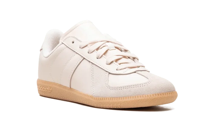 The adidas BW Army "Cream" is a versatile colorway of the model based on a vintage German army indoor training shoe. Released by adidas as an "authentic replica of a vintage German army shoe," according to the brand, the adidas BW Army has a classic look. The upper features a Cream leather construction with a Cream suede overlay on the toe. In keeping with the look of a vintage German army trainer, the shoe is mostly devoid of "adidas" branding, with the exception of a logo on the lateral side of the gum rubber midsole.
