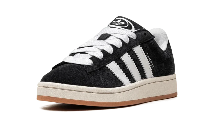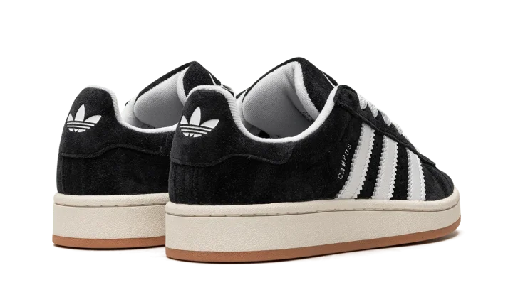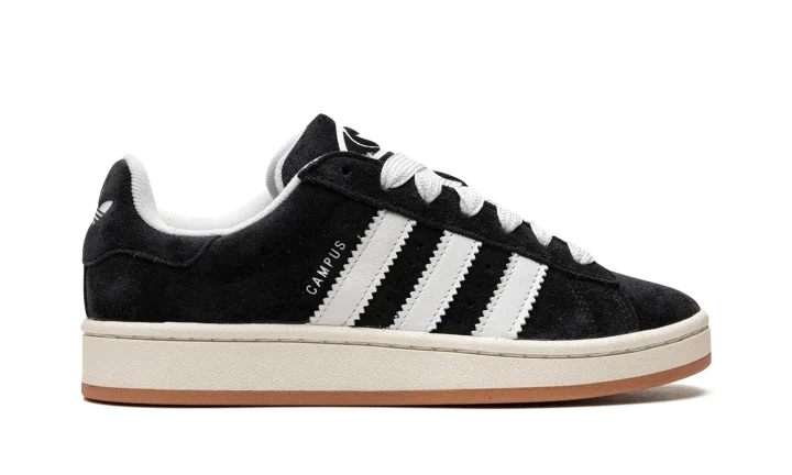 The adidas Campus 00s "Core Black" is a versatile, black-based colorway of the skate-inspired sneaker. Inspired by Y2K-era skate shoes, the Campus 00s is a thoroughly retro-looking sneaker that fits within today's sneaker style aesthetics. The "Core Black" is complete with a black suede construction with white contrast stitching on each overlay. Three Stripes branding is seen on the sides. "Campus" branding appears on the lateral side of the mid-panel next to the classic adidas logo detailing. The brand's signature Trefoil logo is located on the heel and on the tongue in white. The shoe's off-white midsole is mounted on a gum rubber outsole with a herringbone pattern that provides grip whether on or off a skateboard.