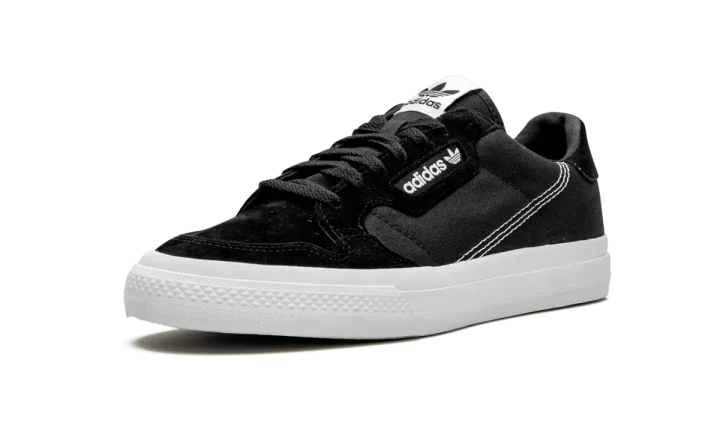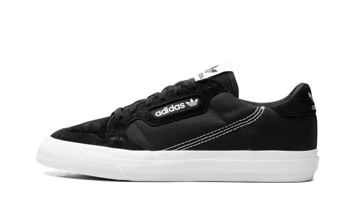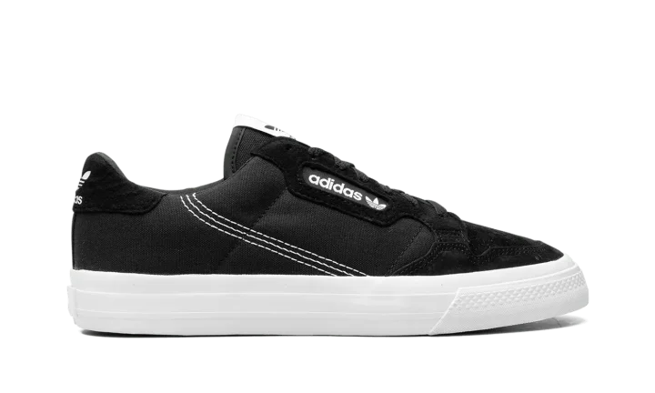 The adidas Continental Vulc has attracted a cult following among sneaker fans who have strong appreciation for retro style. Implementing a modern update to the classic '80s fitness trainer, adidas applies plush suede accenting and a leather heel tab to the durable canvas upper. All of these materials are highlighted in black. An adidas branding window in white on the mid-panel contrasts the monochromatic design of the upper, while a white leather adidas logo on the heel and tongue tag do the same. To round things out, the Continental Vulc sports a vulcanized white sole.