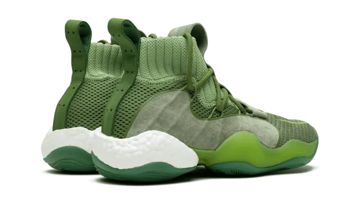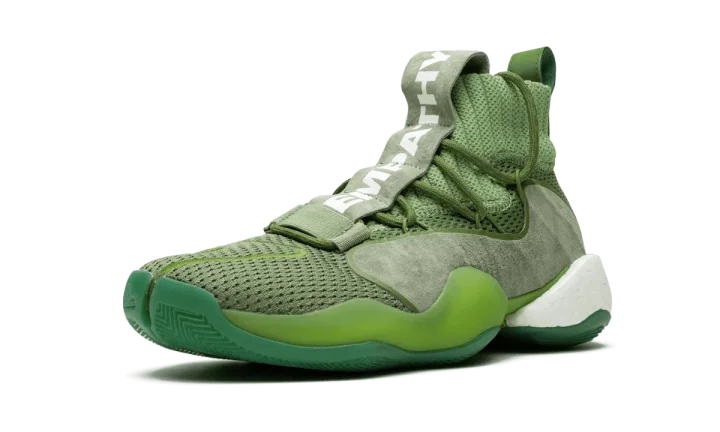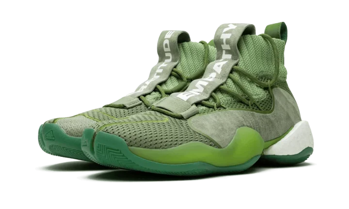 The Pharrell Williams x adidas Crazy BYW High X "Gratitude" furthers Pharrell's journey in designing shoes inspired by humanity and its power to fuel creativity. This pair, one of six in the Gratitude collection, introduces a tonal green upper made of combined materials and large lettering on the tongue tabs that read "Gratitude" and "Empathy". The sock-like Crazy BYW High X style offers a snug fit up top, and below, a chunky green sole reveals visible white Boost cushioning.