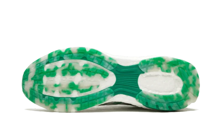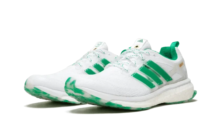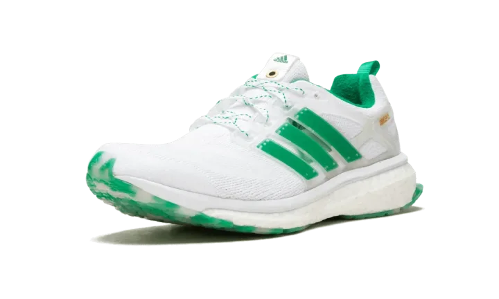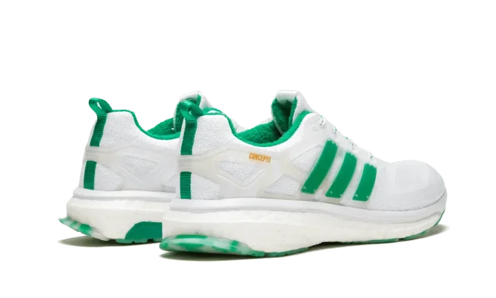 The Concepts x adidas Energy Boost "Shiatsu" is a special collaboration of the Boost-cushioned running shoe from the famous Boston-based sneaker boutique. Concepts' "Shiatsu" colorway is inspired by Asian massage parlors and traditional shiatsu massage. It features a white textile upper and green terry cloth lining referencing the bath robes and towels typically found at a massage parlor. The green accents are inspired by jade stones. For a tongue-in-cheek nod to certain massage parlors, the shoe reveals "stains" across the TPU cage when hit with a blacklight. The Concepts x adidas Energy Boost "Shiatsu" released in July 2018.