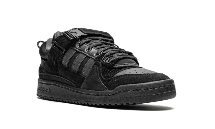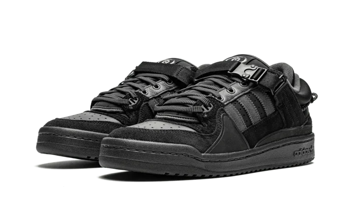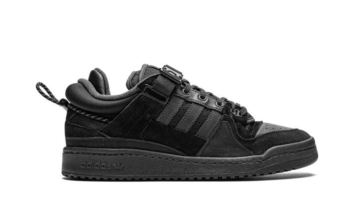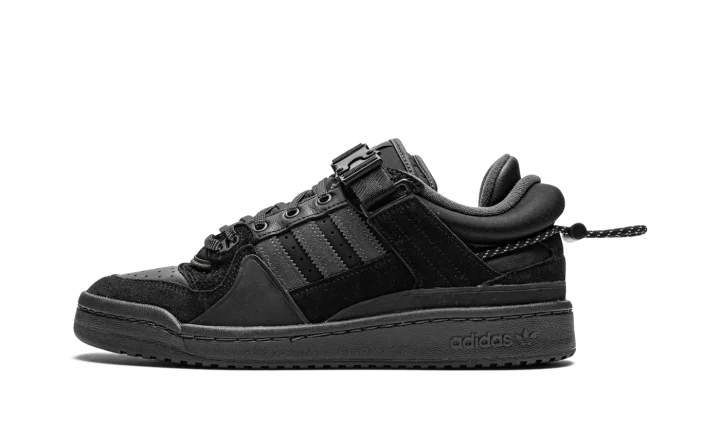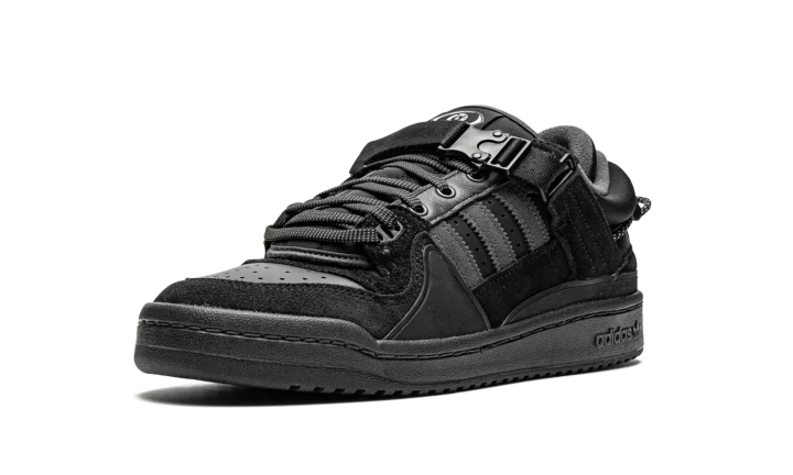 x Bad Bunny Forum Buckle Low sneakers from adidas featuring black, suede, signature three-stripe logo, round toe, perforated detailing, front lace-up fastening, buckle-fastening ankle strap, pull-tab at the heel, branded insole and rubber sole. These styles are supplied by a premium sneaker marketplace. Stocking only the most sought-after footwear, they source and curate some of the most hard to find sneakers from around the world.