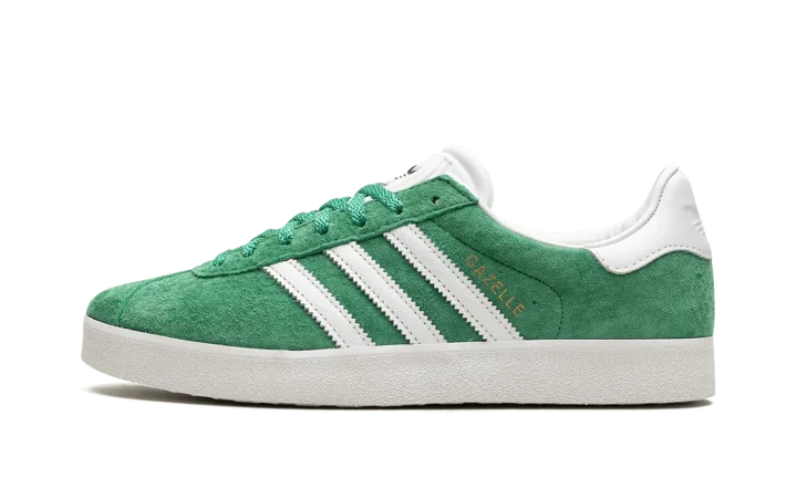 The adidas Gazelle 85 "Court Green" is a classic-looking colorway of the popular lifestyle shoe by the German sneaker brand. The adidas Gazelle 85 in "Court Green" features a green suede construction with white leather Three Stripes and gold foil "Gazelle" text on the lateral side. An adidas Trefoil logo is debossed on the white leather heel tab while a black Trefoil logo is seen on the tongue. A white rubber midsole completes the clean colorway.