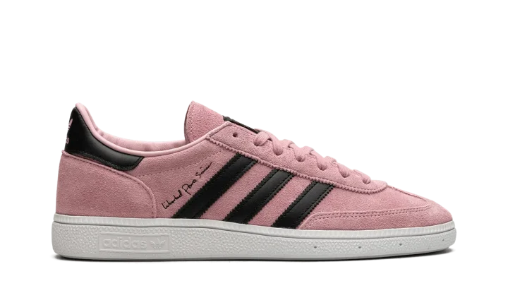 The Inter Miami CF x adidas Handball Spezial is a collaboration between the Miami, Florida based soccer team and adidas on the retro sneaker. From a collection by Inter Miami CF and adidas that also includes apparel options, the adidas Handball Spezial features the soccer team's uniform colors on its design for an intriguing look. The upper is complete with a pink suede construction with tonal suede overlays on the toe and heel. Contrasting black leather Three Stripes branding appears on either side of the shoe. Co-branding can be found on the tongue. Underfoot, a white rubber sole completes the lookIMCF