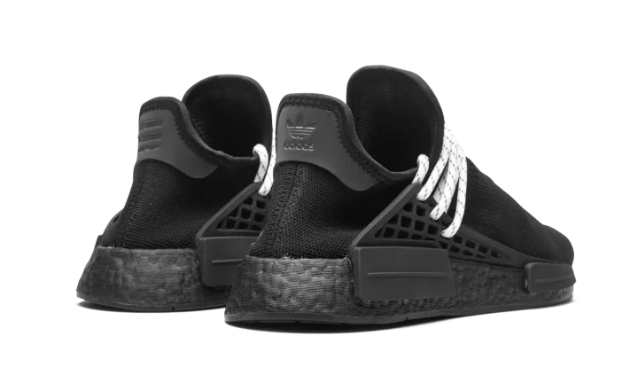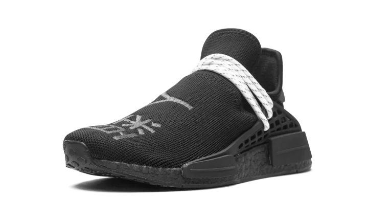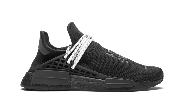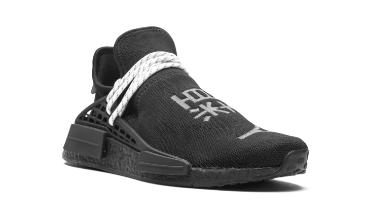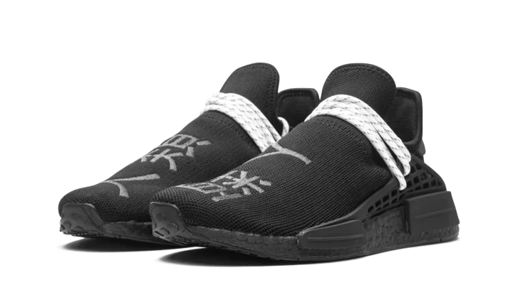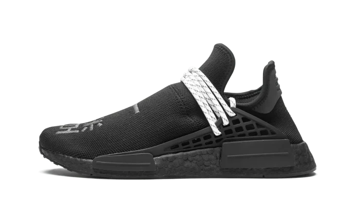 The Pharrell x adidas NMD Hu "Black" finds the Virginia native's popular trail-inspired signature shoe in a versatile colorway fit for every season. Both comfortable and stylish, the adidas NMD Hu is beloved by fans of Pharrell Williams, adidas, and anyone saddled with the footwear brand's Boost cushioning technology, as the NMD Hu is. The "Black" design features a predominantly all-black appearance save for the white speckled rope laces. The Primeknit upper features Chinese characters embroidered on the top of the foot and dual Pharrell and adidas branding on the heel. The previously mentioned rope laces are held in place by a tonal supportive TPU caging system that is anchored by midsole inserts. Adidas paints the Boost cushioning underfoot in black to complete the stealthy look of the "Black" NMD Hu.