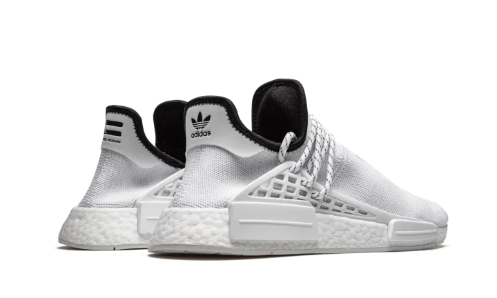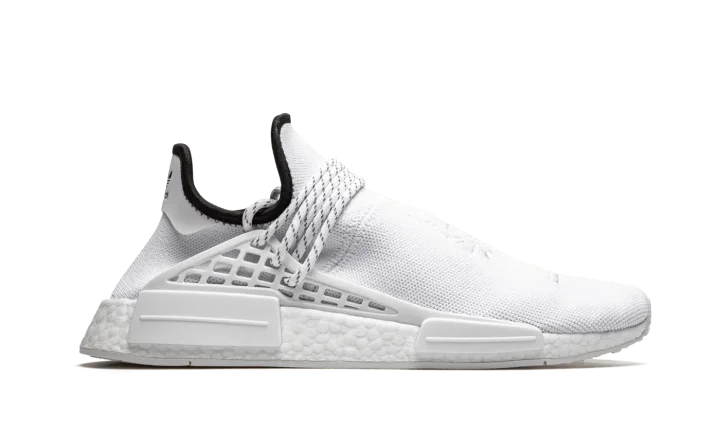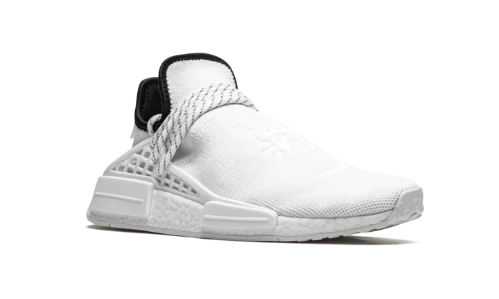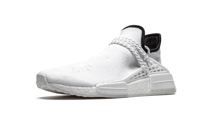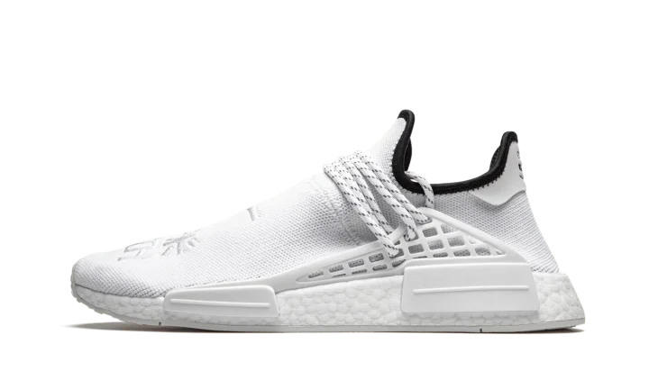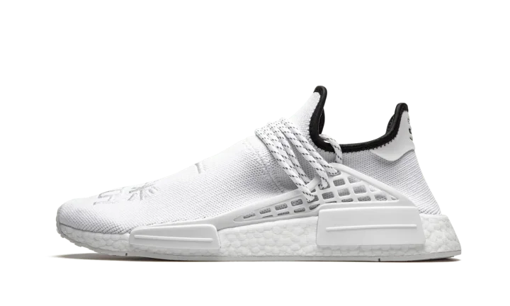 The Pharrell x adidas NMD Hu "Core White" is a November 2020 release from the Virginia based cultural icon and adidas on the former's popular low-top silhouette. The "Core White" is a change of pace for the adidas NMD Hu model as it features a predominantly white monochromatic design, a stark departure from the multicolor styles that dominated the model's early product cycle. No less covetable, the "Core White" colorway displays a wearable look for those who appreciate a clean shoe that can be worn with virtually anything it's paired with. Adidas outfits the shoe in a crisp white Primeknit material and places traditional Chinese symbols on the top of the shoe. The speckled white rope laces are held in place by a supportive TPU caging system anchored by midsole inserts. Additional styling includes a black liner and dual adidas and Human Race branding on the heel. Underfoot, Boost cushioning provides a comfortable and responsive ride for the wearer.