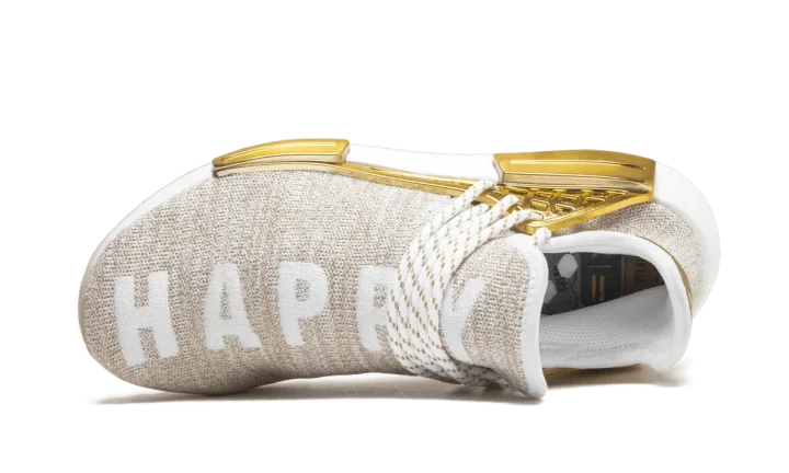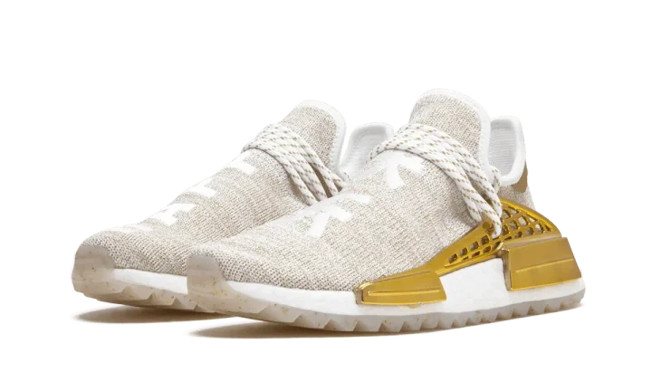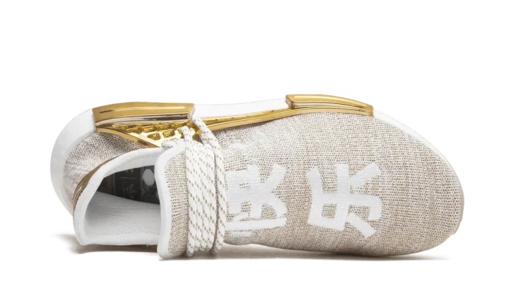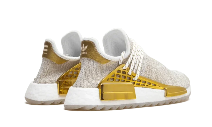 After developing a collection inspired by the Holi festival in India, Pharrell Williams's created a series of adidas NMD Hu Trail sneakers based on the culture of China. Released in 2018, the four-colorway set took inspiration from the concept of yin and yang. Each sneaker symbolizes one of four natural elements. Representing metal, the gold Pharrell x adidas NMD Hu Trail was the headliner of the "China Exclusive" collection. The sneakers blend gold and white colors in the mesh upper and incorporate metallic gold accents in the TPU cage and midsole inserts. The Pharrell x adidas NMD Hu Trail "China Exclusive" was limited to only 300 pairs and given out exclusively to friends and family of adidas Originals.