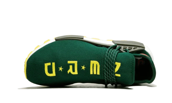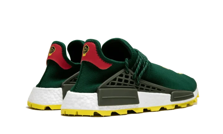 The NERD x Pharrell x adidas NMD Hu "BBC Exclusive" is another important addition to the ongoing legacy of Pharrell Williams' partnership with adidas. This NMD Hu once again showcases Pharrell's supergroup, NERD. With a dark green mesh upper, the "N*E*R*D" logo pops in yellow across the top of each foot. The rubber outsole is done in a matching yellow. Red heel tabs and olive green on the cages add the final touches. The NERD x Pharrell x adidas NMD Hu "BBC Exclusive" released only at the Billionaire Boys Club flagship retail location in New York City in September 2018, making it yet another highly limited release from Pharrell and adidas.