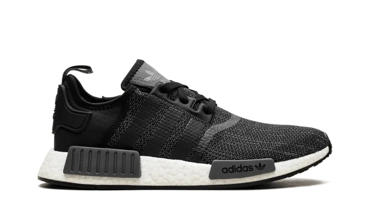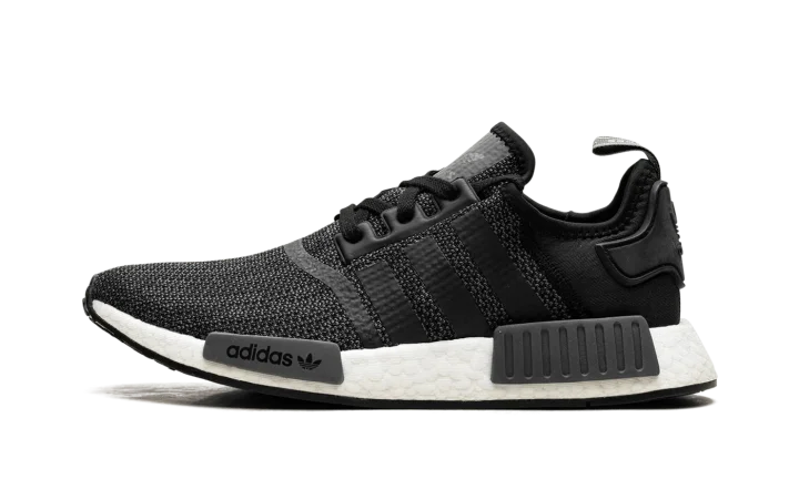 The adidas NMD R1 bridges the gap between tech performance and streetwear style. The NMD R1 has a mesh upper that gives it a unique texture while also delivering a sock-like fit. Different shades of black are deployed on the upper to give the sneaker a dynamic visual appeal that is complemented by the white Boost midsole and the NMD's signature EVA plugs.