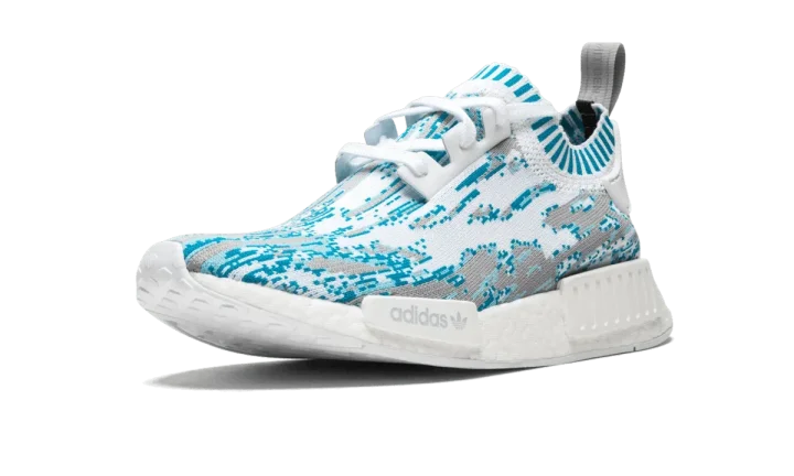 With two NMD models in circulation, adidas takes it back to the original with the NMD_R1 Primeknit "Datamosh" Pack. Released exclusively at Sneakersnstuff, the release is comprised of two colorways – each featuring a graphic on the upper that mirrors distorted images on a screen (it's almost reminiscent of a glitch camo motif). Here, we highlight the Footwear White, Clear Aqua, and Lab Green option. A full-length Boost midsole provides comfort and cushioning. The "Datamosh" Pack was limited and extremely difficult to cop, as SNS attempted to beat out the bots by providing the link for both colorways via Instagram Live – meaning prospective customers had to manually type in the link as opposed to a simple click through version.