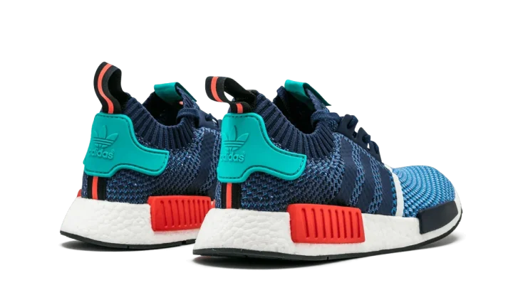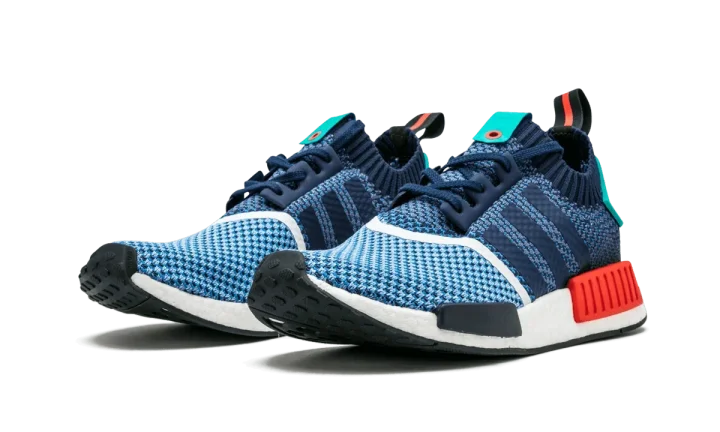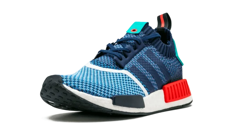 Channeling the spirit of the '80s aesthetic, the Packer Shoes x adidas Consortium NMD R1 Primeknit released along with a capsule collection of apparel. It features a knitted Primeknit upper in a multicolor make up Clear Sky, Dark Blue, and Light Aqua, with red accents and a white midsole.