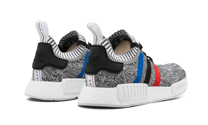 One-half of the adidas NMD R1 Primeknit "Tri-Color" pack, this clean take on 2016's most popular sneaker features a grey-tinted woven Primeknit upper. Three Stripes with a tri-colored treatment offers some variation, which black accents and a white Boost midsole balance out the shoe.