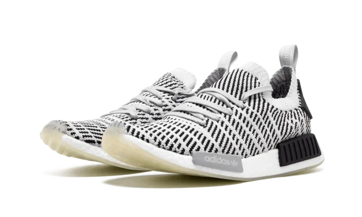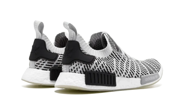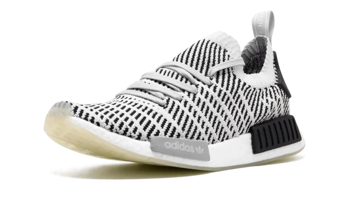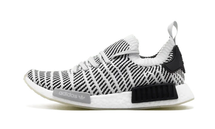 The adidas NMD_R1 combines a full Primeknit upper and Boost midsole for an ultramodern runner. The interlaced grey and core black recalls patterns from adidas Yeezy Boost 350s. A semi-translucent outsoles and EVA midsole plugs accent this pair's sleek shape.