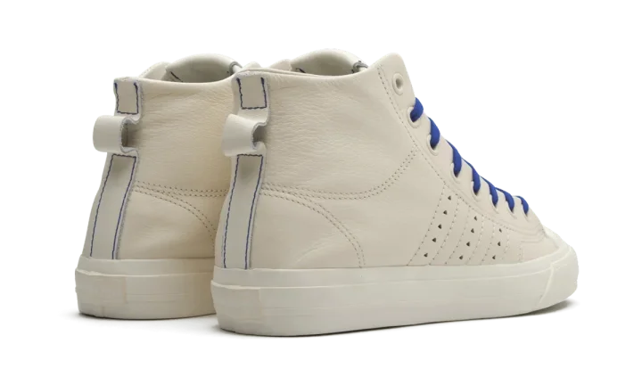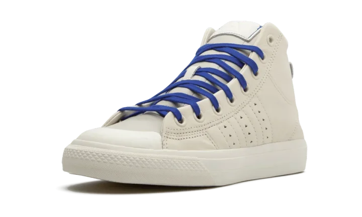 The Pharrell Williams x adidas Nizza Hi is one of the clean designs featured in the hip-hop artist's "March Madness" collection of 2020. Consisting of tie-dye apparel and neutral-colored footwear options, the expansive range is unquestionably one of the most popular collaborations of 2020. This ultra versatile high-top features an "Ecru Tint" leather upper with perforated Three Stripes detailing on the mid-panel and contrast stitching separating each panel. Bold royal blue laces add a unique touch to an otherwise elegant design. The Pharrell Williams x adidas Nizza Hi was released in March 2020.