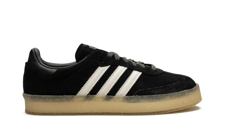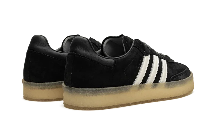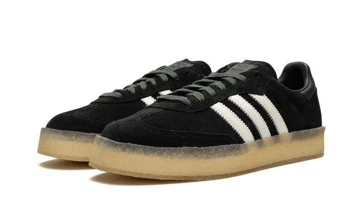The Ronnie Fieg x Clarks x adidas 8th Street Samba "Shadow Green" is a three-way collaboration between the New York footwear designer, the heritage footwear company, and adidas on a unique colorway of the lifestyle shoe. The "Shadow Green" combines a sportswear aesthetic with Clarks' timeless styling to give the adidas Samba a clean and versatile look. The upper features a Shadow Green suede construction with tonal overlays. White leather Three Stripes branding appears on the sides and co-branded graphics are displayed on the tongue. Clarks' iconic, semi-translucent crepe rubber sole rounds out the look.