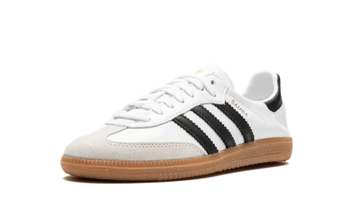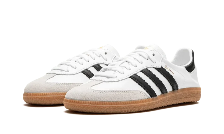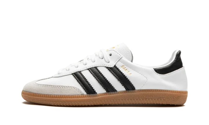 The adidas Samba Decon "White/Black/Gum" is an alternate version of the popular retro indoor soccer shoe with a collapsible heel. Based on the adidas Samba OG, the Samba Decon features modifications such as a leather lining and a lighter shade of gum and suede on the toe compared to the standard Samba. As for the rest of the shoe, white leather can be found on the base of the upper while black leather Three Stripes and "Samba" branding are seen on the side. Classic "adidas Samba" branding is located on the tongue.