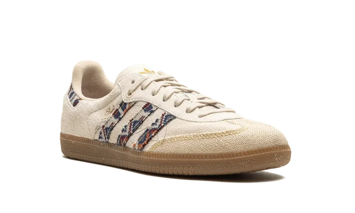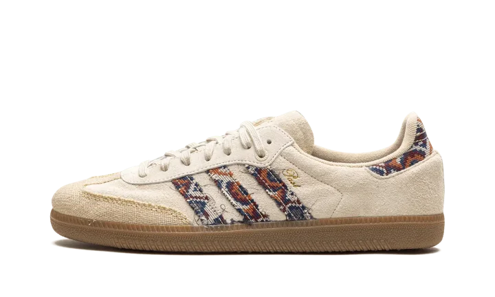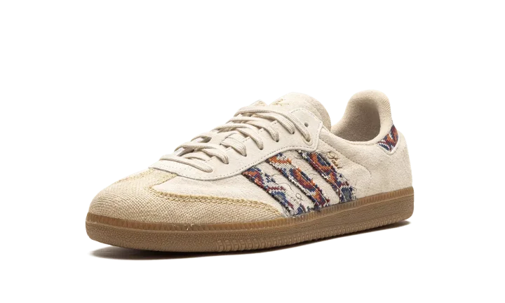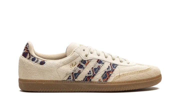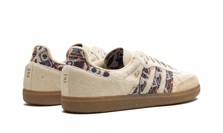 The END x adidas Samba "Past" is a collaboration by the retailer and adidas on a colorway of the retro indoor soccer shoe inspired by historical materials. The adidas Samba "Past" was part of adidas's fan-judged Consortium Cup contest before it was released to the public. As for its design, the shoe features a cream-beige hairy suede construction with a heavy, durable tonal-colored fabric on the toe. A tapestry-like pattern on the heel and on the Three Stripes branding on the sides. "Past" replaces "Samba" branding on the lateral side of the mid-panel and co-branding is seen on the tongue. A gum rubber sole completes the look.