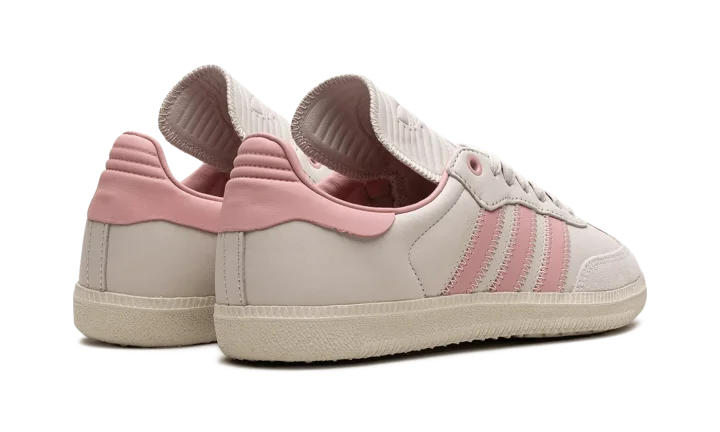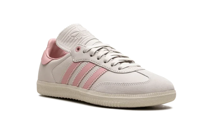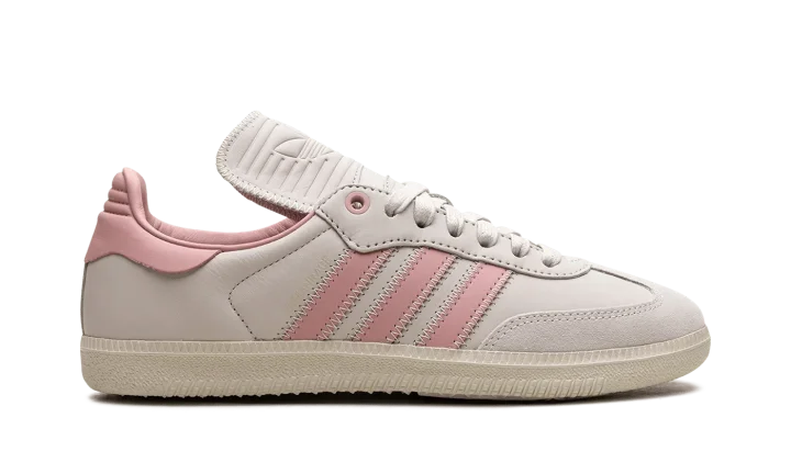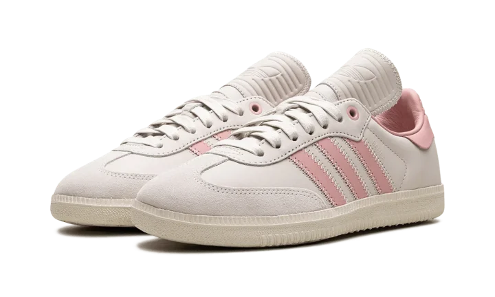 The Pharrell x adidas Samba Humanrace "Aluminum/Wonder Mauve" is a collaboration by Pharrell's lifestyle brand and adidas on a colorway of the retro soccer shoe with pastel pink accents. In addition to releasing the Samba Humanrace in a collection of monochromatic colorways, Pharrell and adidas co-design the retro-yet-modern shoe in this versatile look that features a pleasing combination of light grey and pink. More specifically, the shoe has what adidas is calling an Aluminum leather upper with tonal suede overlays. Wonder Mauve Three Stripes branding appears on the sides. The pink hue is also seen on the leather heel tab. An Aluminum rubber sole completes the look.