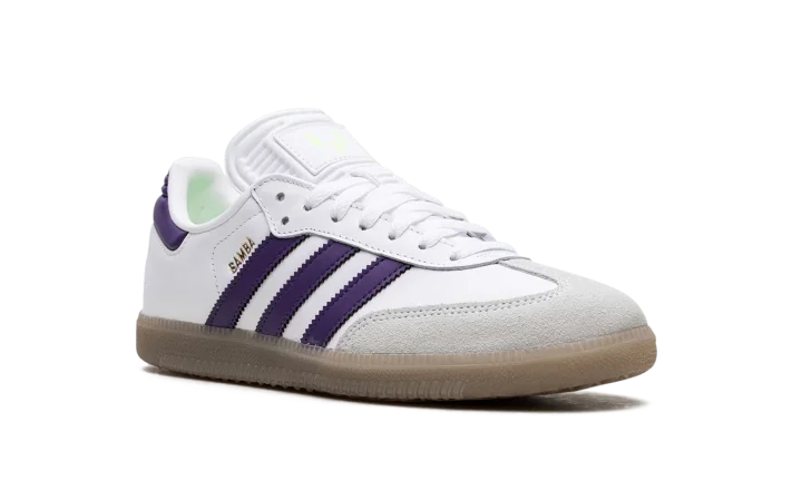 Step into a world where sport meets greatness with the Samba Messi "Core Black / Gold Metallic / Gum". This celebrated collaboration with Lionel Messi features a sleek Core Black leather upper, accented by striking Gold Metallic details. Enjoy superior cushioning and a timeless design that's perfect for making a powerful statement on the streets.