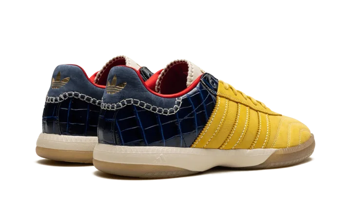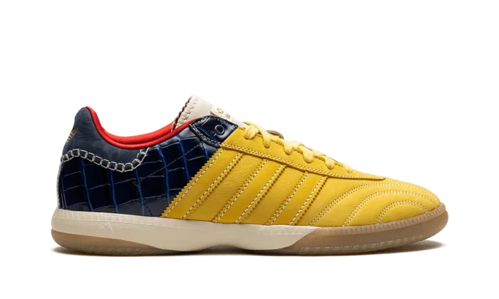 Step into a world of tailored luxury with the Adidas Samba Millenium Wales Bonner "Fade Gold / Navy Croc". This celebrated collaboration features a rich navy upper accented by striking croc-embossed leather and gold details. The unique textures and elevated finish deliver a comfortable fit and a versatile look that's perfect for making a powerful, sophisticated statement.