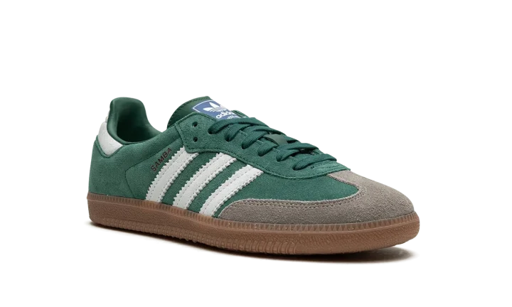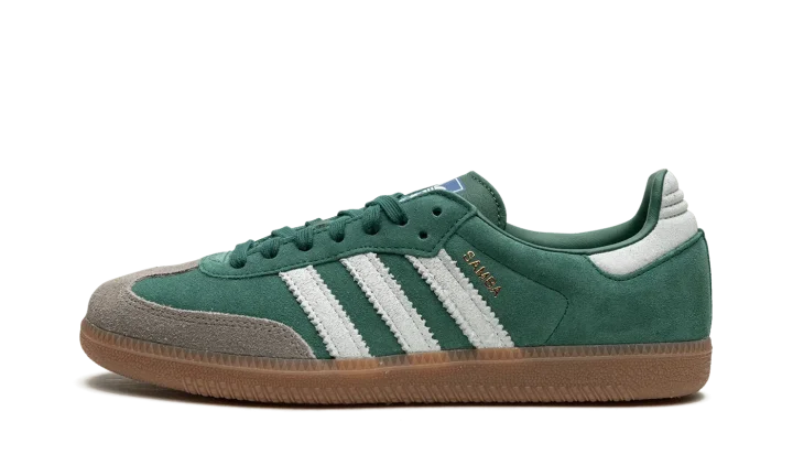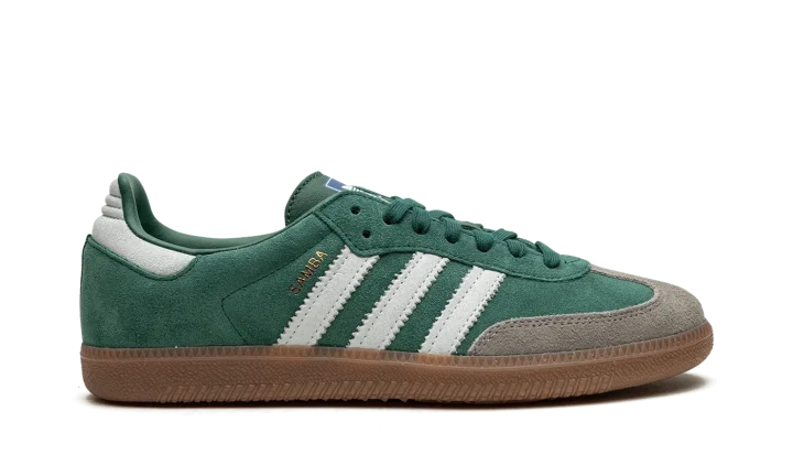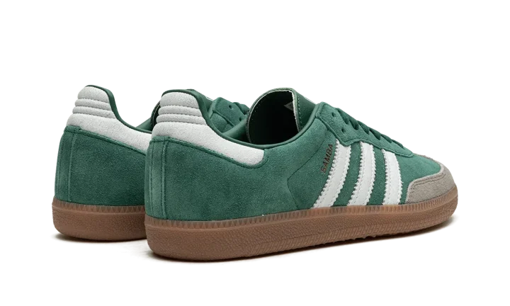 The adidas Samba "Collegiate Green" is yet another classic colorway of the popular sneaker. Originally a soccer shoe, the adidas Samba has since become one of the brand's most essential and popular styles. The "Collegiate Green" features a green suede upper with white leather Three Stripes branding on the sides. A gold "Samba" logo appears on the lateral side of the shoe next to the aforementioned adidas logo. A brown suede overlay is located on the toe. More retro-inspired branding lands on the tongue. A gum rubber sole completes the look.