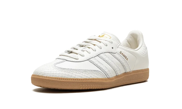 Step into a classic with the Adidas Samba OG "Snakeskin White". This iconic silhouette blends heritage style with a unique snakeskin-textured upper. Featuring a clean design, premium materials, and signature Samba details, this sneaker offers both comfort and versatile appeal.
