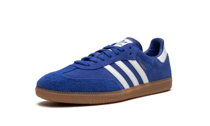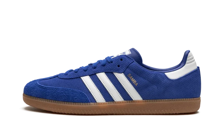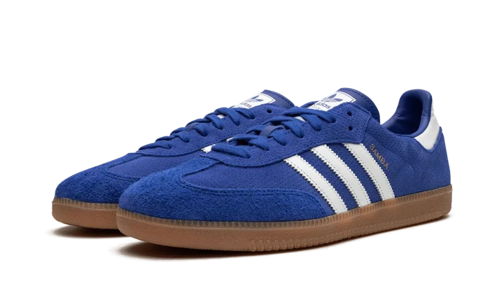 The adidas Samba OG "Royal Blue/Gum" is another classic colorway of the retro indoor soccer shoe with a can't-miss blue appearance. The Samba OG in the "Royal Blue/Gum" features a Royal Blue suede construction with a tonal hairy suede overlay on the toe. White leather Three Stripes branding can be found on the sides. A gold foil "Samba" logo is stamped on the lateral side of the shoe. An old school "adidas Samba" graphic is found on the tongue. The gum rubber sole completes the look.