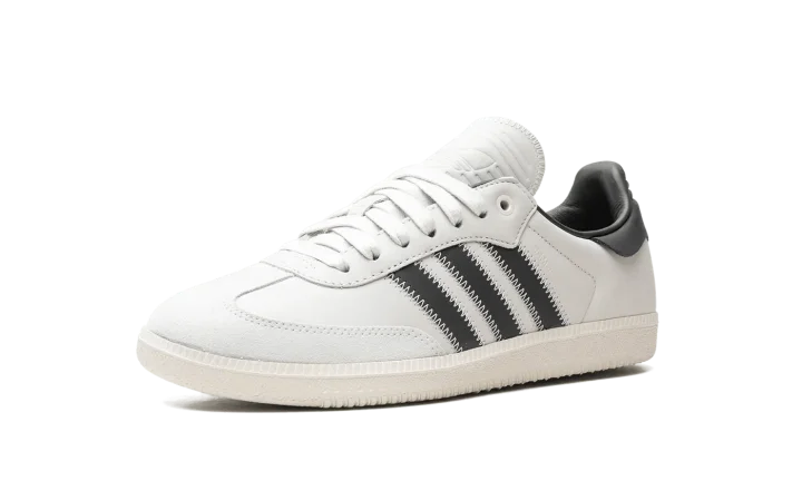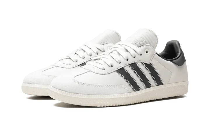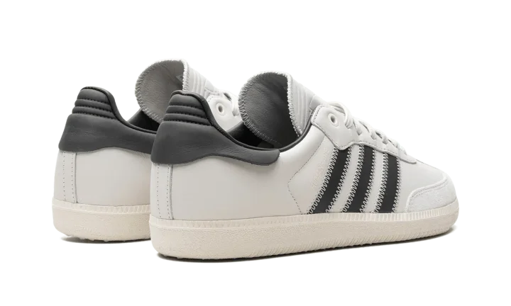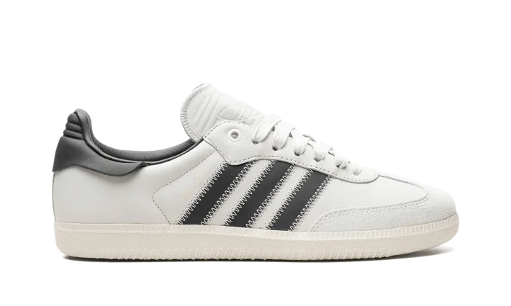 The Pharrell Williams x adidas Samba Humanrace "Aluminum/Core Black" is a collaboration by the recording artist and fashion designer's lifestyle brand on the retro shoe. The adidas Samba Humanrace in "Aluminum/Core Black" features an Aluminum-colored leather upper with a tonal suede overlay on the toe. On the sides, Core Black leather Three Stripes contrasts the shoe's crisp white appearance. Additional Core Black leather also seen on the leather heel tab. An Aluminum rubber sole completes the look.