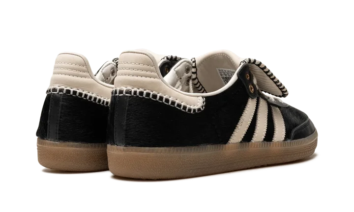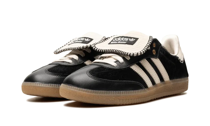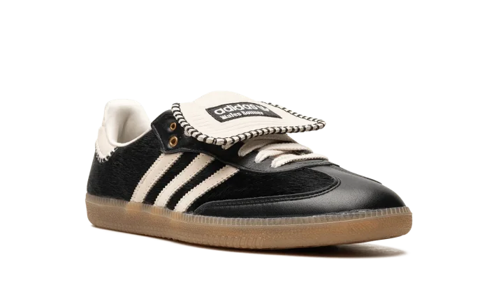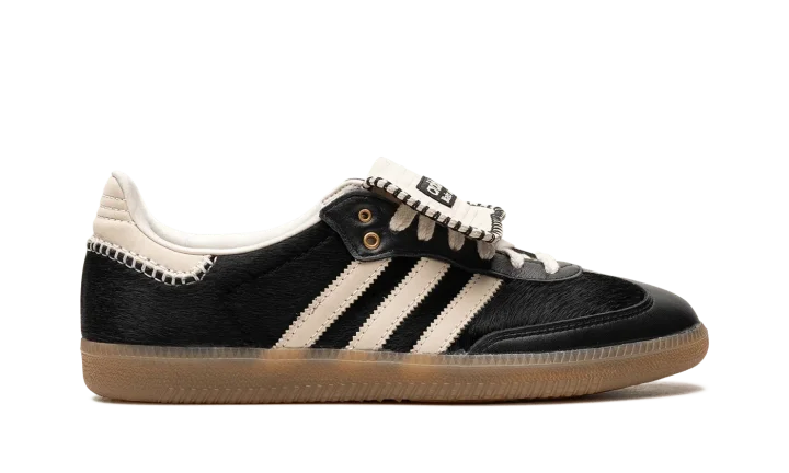 The Wales Bonner x adidas Samba "Pony - Black/White" is a collaboration by the London based fashion designer on a colorway of the retro sneaker with a faux pony hair construction. Wales Bonner and adidas have worked together on several occasions over the years and, here, the former designs the popular retro indoor soccer shoe with a black pony hair textured upper. Cream leather Three Stripes branding appears on either side while cream detailing can also be found on the heel tab. A fold-over-style tongue is a nod to the Samba's original design. Underfoot, a semi-translucent gum rubber sole completes the look.