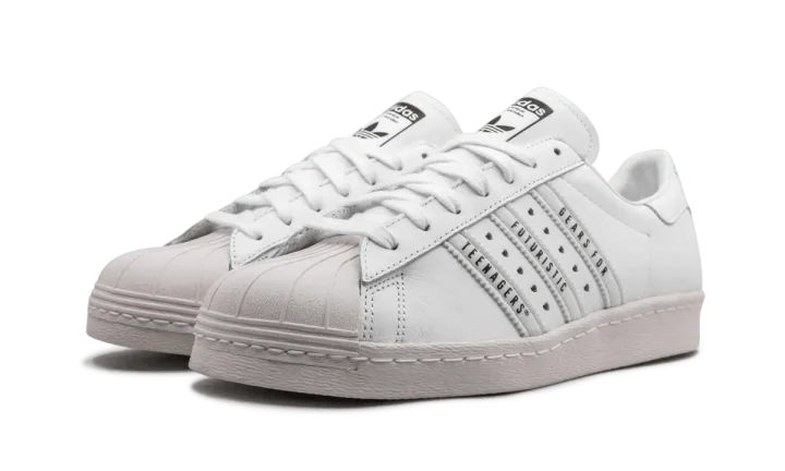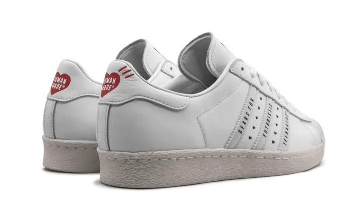 The Human Made x adidas Superstar 80s "White" doubles down on versatility with a crisp all-white leather design. One of three colorways of desirable Superstar 80s reworked by Human Made for Spring/Summer 2020, this timeless low-top features contemporary branding like "Gears For Futuristic Teenagers" printed within the Three Stripes branding on the mid-panel. Smooth white leather dots the entire upper, save for the contrasting cream rubber shell toe. Vibrant Human Made branding can be found on the heel tab and classic adidas detailing appears on the tongue. The look is finished off white a cream midsole for a decidedly vintage aesthetic. The Human Made x adidas Superstar 80s "White" was released on April 24, 2020.