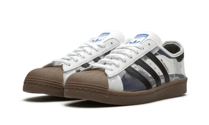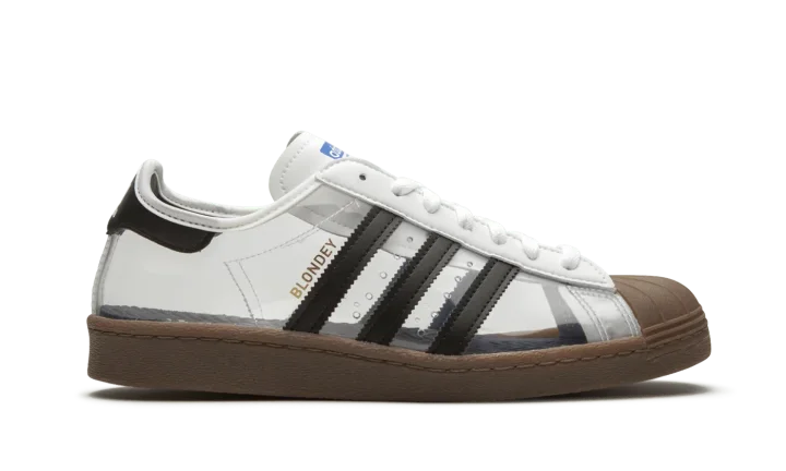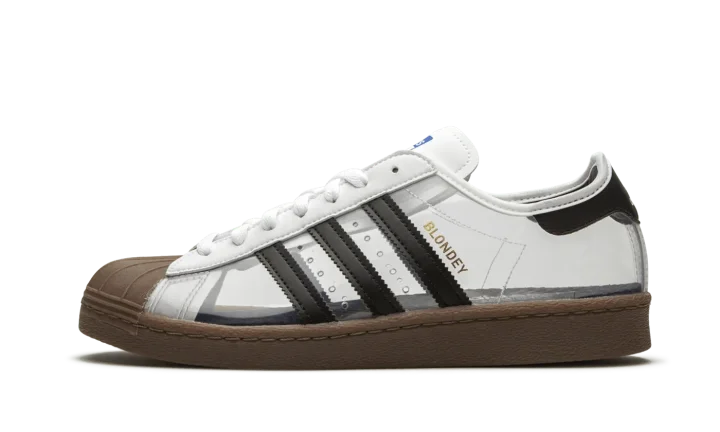 The Superstar 80 'Blondey McCoy' shoe is a collaboration with Blondey McCoy, featuring a unique design that blends classic Adidas Superstar style with his distinctive aesthetic.