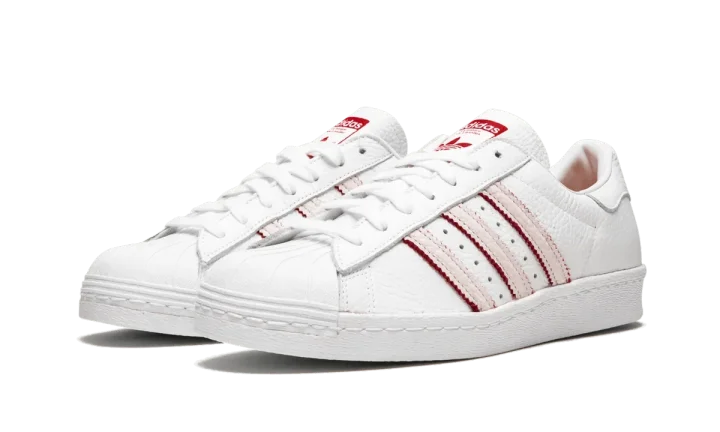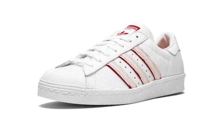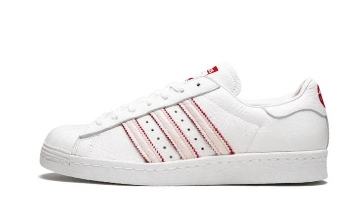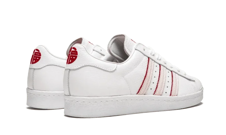 The Superstar 80S CNY 'Chinese New Year' shoe features a classic design with festive elements, celebrating the Lunar New Year with unique details inspired by the occasion.