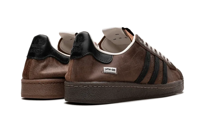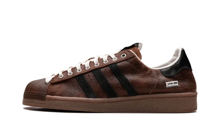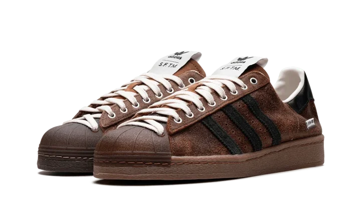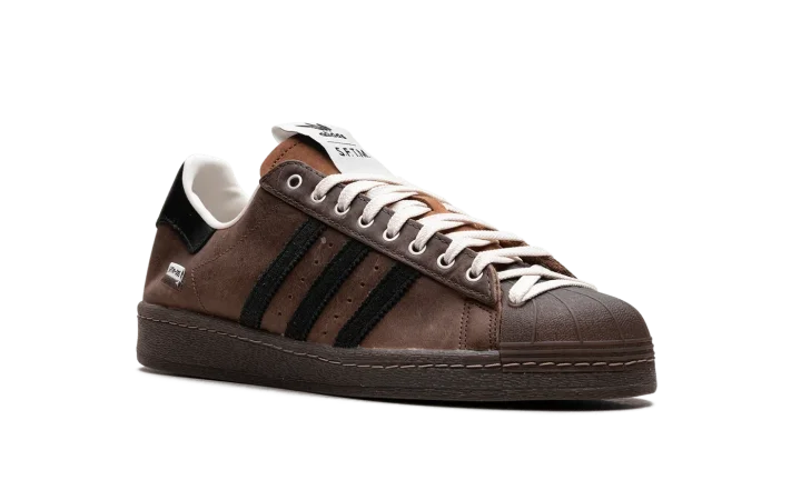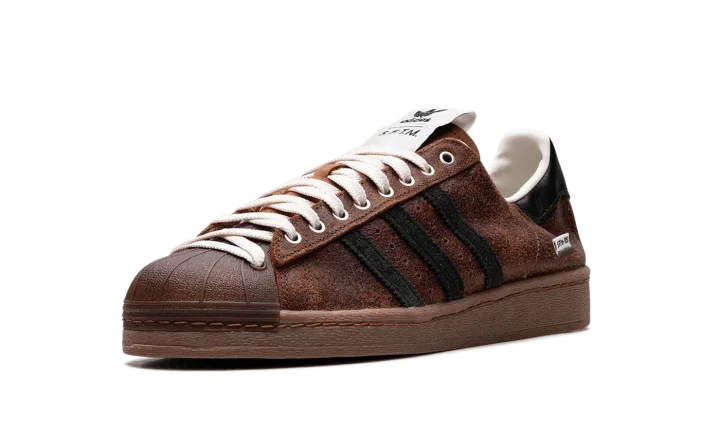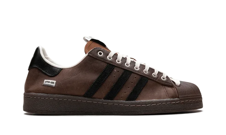 The Superstar 82 'Song For The Mute - Brown' shoe blends classic Adidas Superstar style with a unique design inspired by the "Song For The Mute" collaboration, featuring a sleek brown aesthetic.