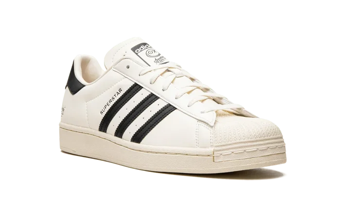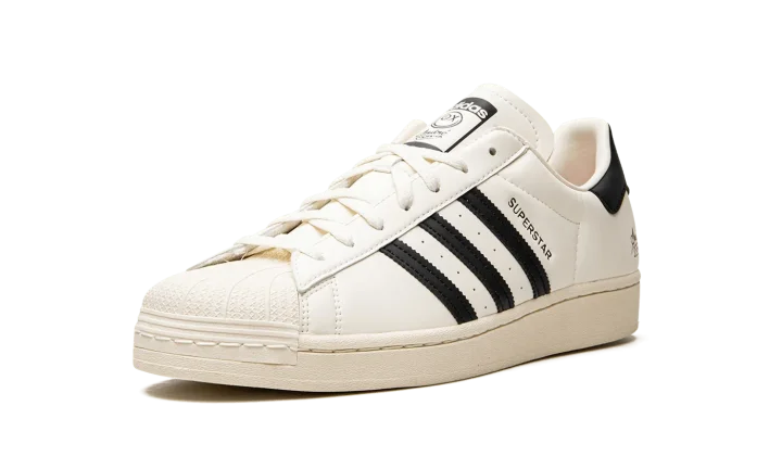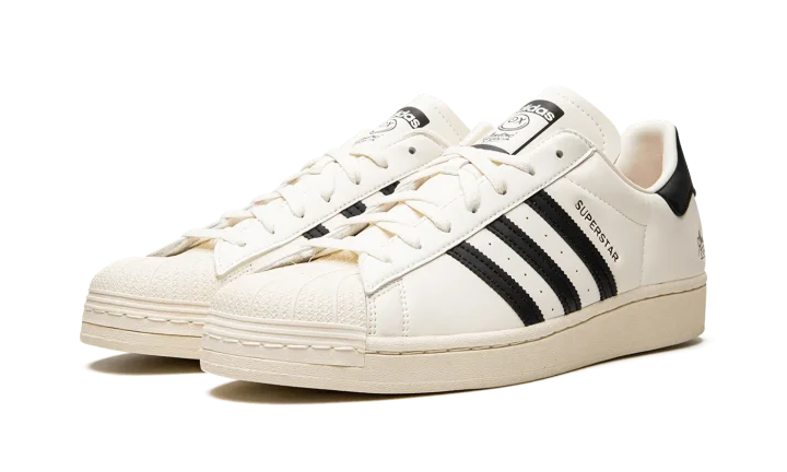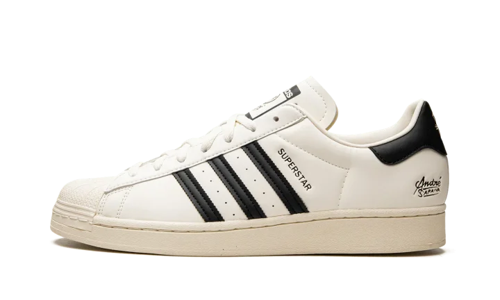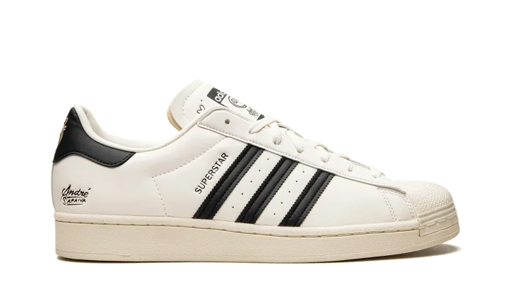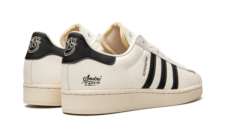 The Andre Saraiva x adidas Superstar is a collaboration between the French illustrator and artist and adidas on the timeless low-top shoe. Released in Spring 2022, the adidas Superstar by Andre Saraiva champions a timeless, vintage-inspired design that stays true to the original look of the Superstar, albeit with a few subtle updates. Andre Saraiva branding is found on the lateral side of the heel, on the tongue, and heel. The upper is designed in a Chalk White leather that gives the shoe a vintage look. Classic black leather Three Stripes branding dots either side. "Superstar" detailing in Gold Trefoil is found next to the adidas insignia. A creamy Chalk White rubber sole continues the shoe's throwback appearance.