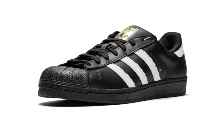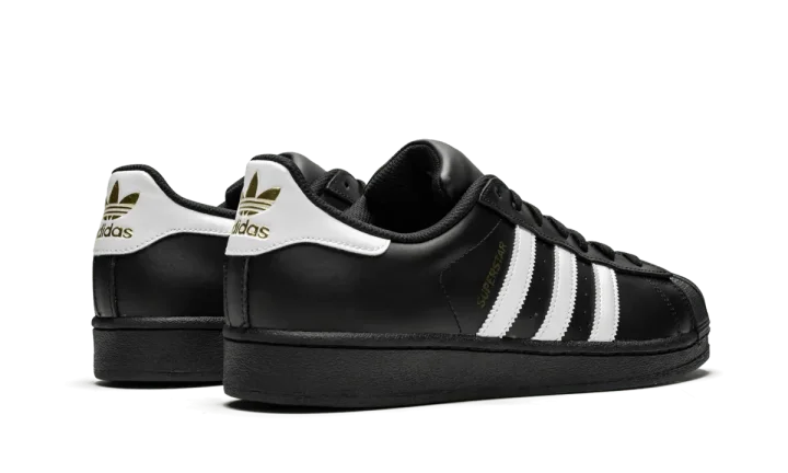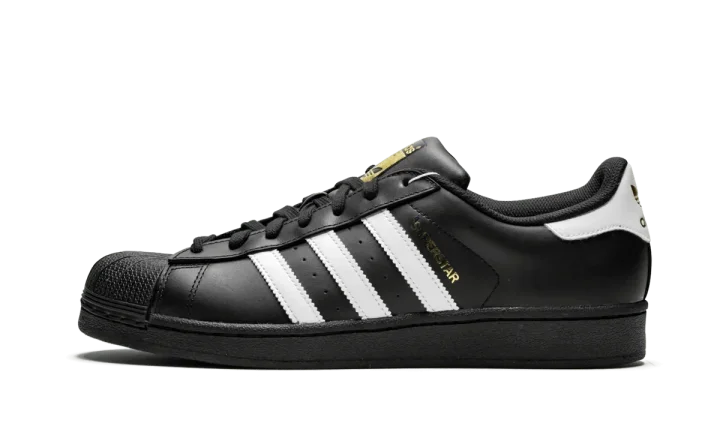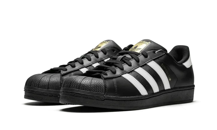 The Superstar Foundation 'Black/White' shoe features a classic two-tone design, offering a versatile and timeless addition to any sneaker collection.