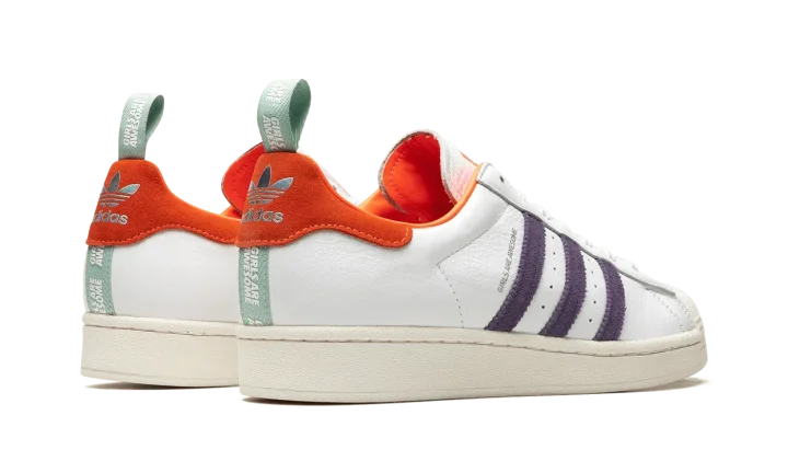 The Superstar 'Girls Are Awesome' shoe features a design in collaboration with Girls Are Awesome, offering a vibrant and empowering take on the classic Superstar silhouette.