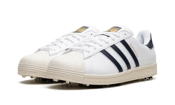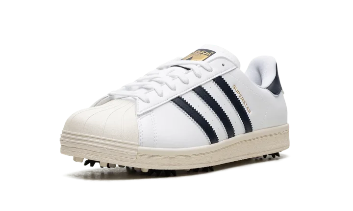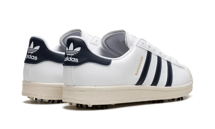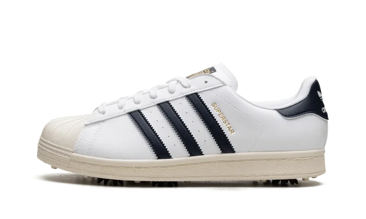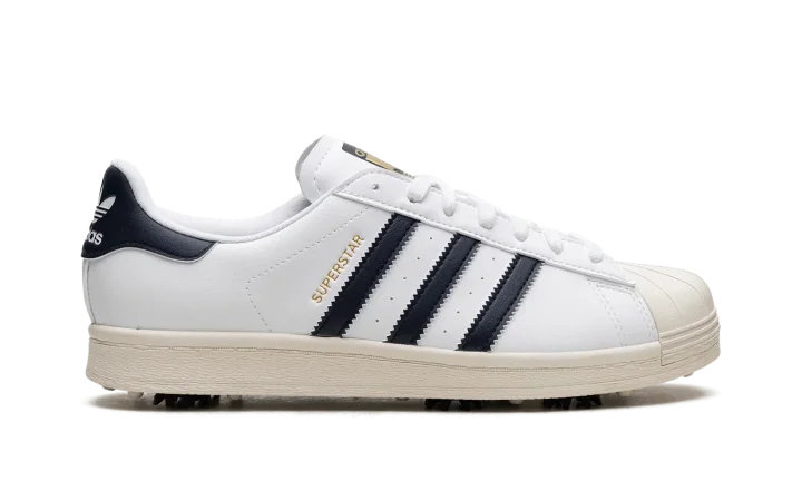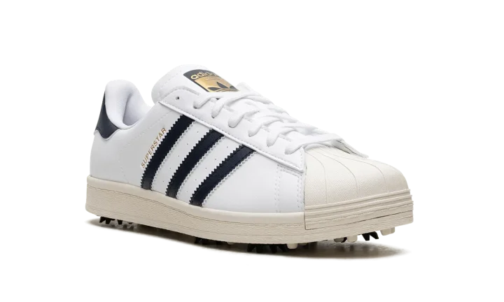 The Superstar GOLF 'White / Navy' shoe blends classic Adidas Superstar style with golf-specific features, offering a stylish and functional option for the course.