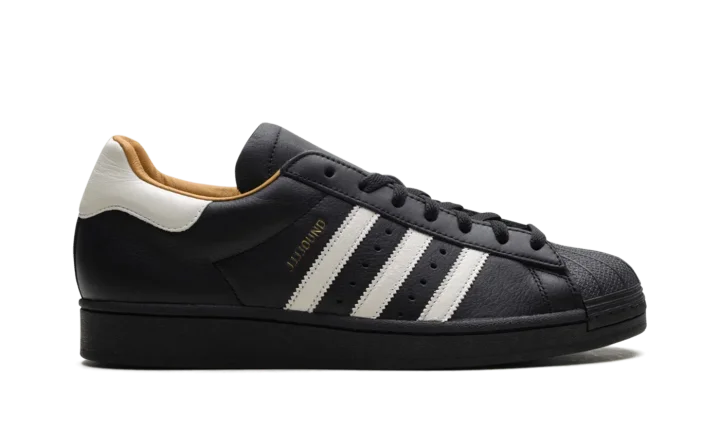 The Superstar 'JJJJound - Made in Japan' shoe blends classic Adidas Superstar style with a minimalist design, featuring premium materials and Japanese craftsmanship for a sophisticated and exclusive look.