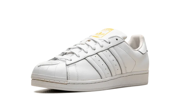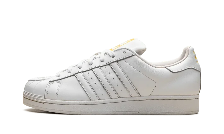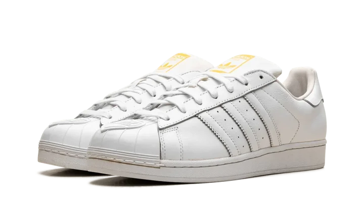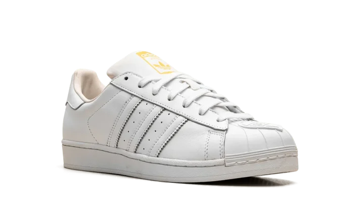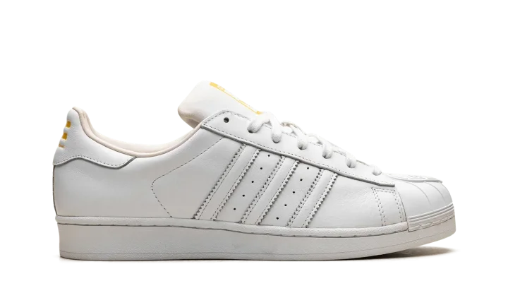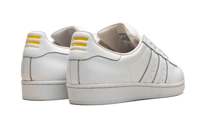 The Superstar Supershell 'Pharrell - Space Time' shoe blends classic Adidas Superstar style with a unique design by Pharrell Williams, featuring a distinctive "Space Time" aesthetic.