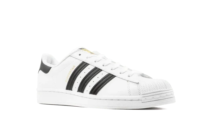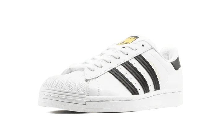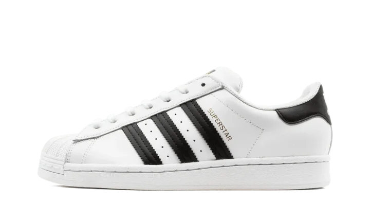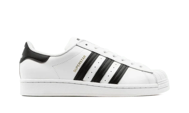 The Superstar 'White / Black' shoe features a classic two-tone design, offering a versatile and timeless addition to any sneaker collection.