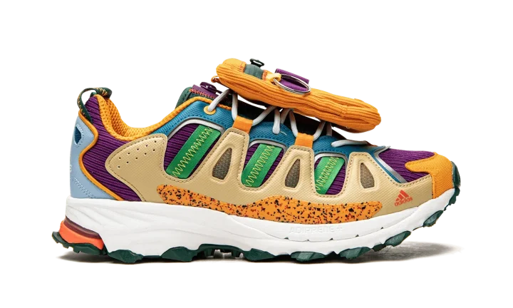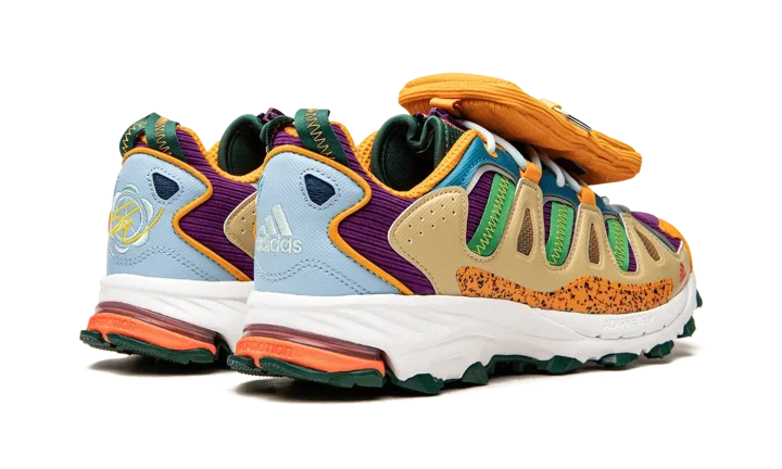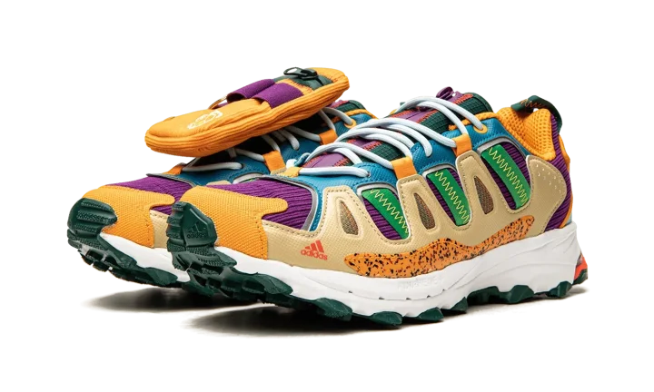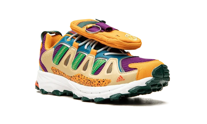 The Sean Wotherspoon x adidas Superturf Adventure "Jiminy Cricket" is a creative collaboration between the sneaker designer and vintage fashion curator, Disney, and adidas, on a colorway dedicated to the beloved "Pinocchio" character. Appearing on adidas's Superturf Adventure silhouette, the "Jiminy Cricket" is indeed inspired by the cartoon character of the same name. A removable lace cover that can be used as a keychain and necklace appears on the top of the shoe. An image of Jiminy Cricket is found on the tongue's zipper. The rest of the upper takes cues from the lovable Disney character's outfit.