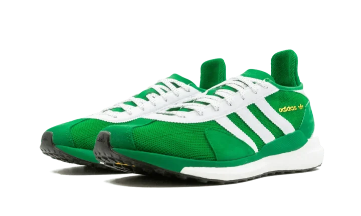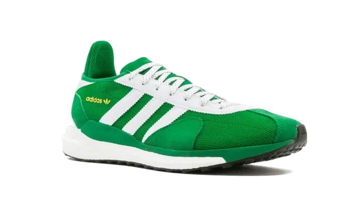 The HUMAN MADE x adidas Originals Tokio Solar HM adds vibrant green color to a new silhouette brought to you by visionary creative and archivist NIGO. The collaborative adidas shoe draws inspiration from NIGO's personal archive and adidas's vintage sporting heritage. Taking design elements from the Tokio trainer that was developed for the 1964 Tokyo Olympics, the Tokio Solar HM is made of a Primeknit upper with suede panels and leather Three Stripes. An "X" detail, made out of the same leather as the Three Stripes, appears on the mid panel and heel.