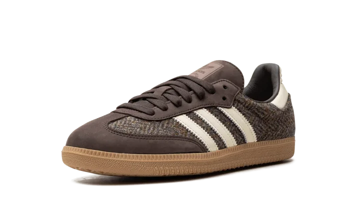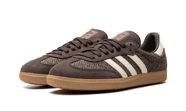 Discover a refined take on the Samba with the Adidas Samba OG Tweed Pack. The Dark Brown tweed upper offers a unique and stylish texture, complemented by Cream White detailing. The classic gum outsole completes the look. This design provides a sophisticated twist on the iconic Samba silhouette.