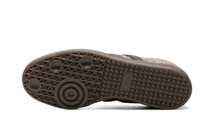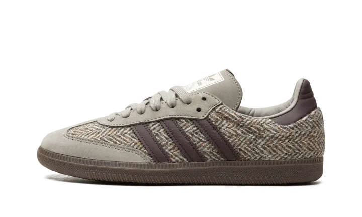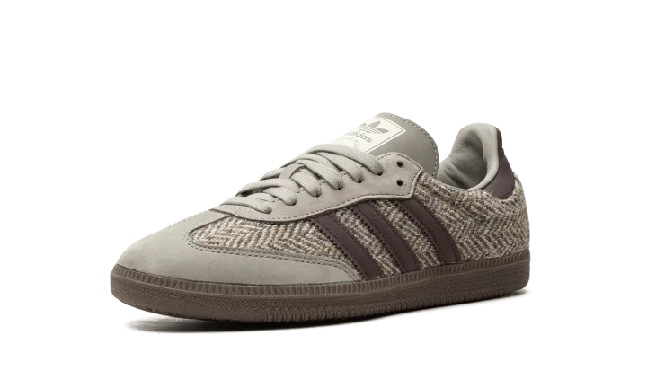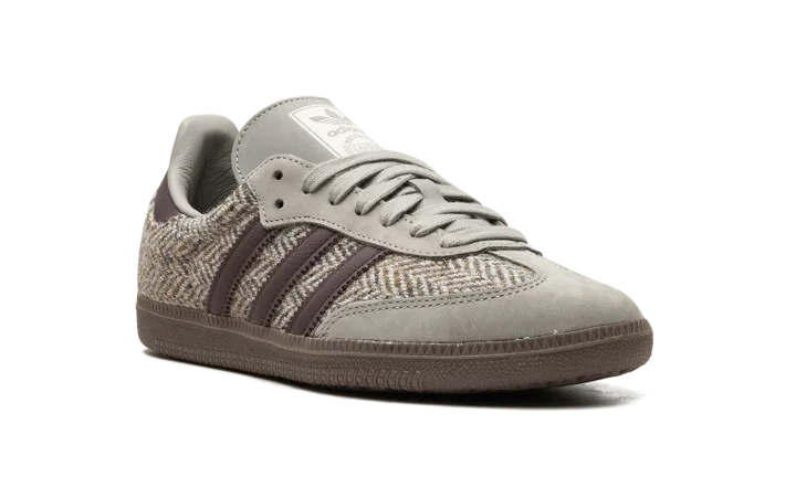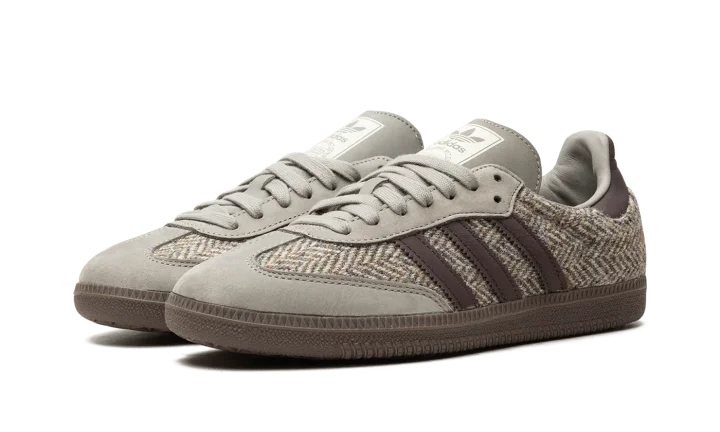 Discover a sophisticated blend of materials with the Adidas Samba OG "Tweed Pack Wonder Beige". The Wonder Beige and Shadow Brown tweed upper offers a unique textural element, while the Wonder White accents complete the stylish look.