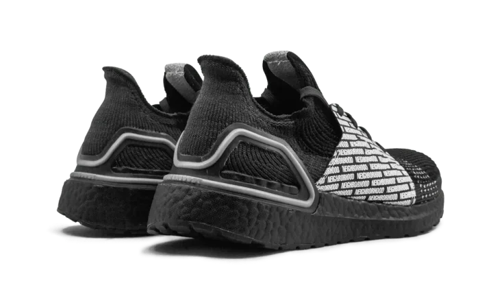 The Neighborhood x adidas Ultra Boost 19 finds longtime collaborator and streetwear stalwart Neighborhood once again adding their unique styling to core adidas footwear. Sticking with its minimalist design ethos, the Japanese streetwear brand opts for an all-black-everything construction of the Ultra Boost 19's Primeknit upper. The midfoot shroud is contrasted by a repeating white Neighborhood branding motif. The only other form of outward branding found on the shoe is the Adidas logo on each tongue. A black Boost-cushioned sole completes the look. The Neighborhood x adidas Ultra Boost 19 was released on November 29, 2019.