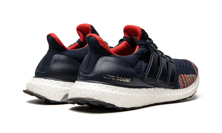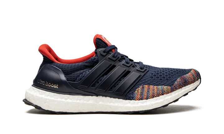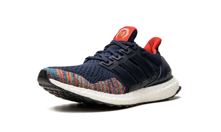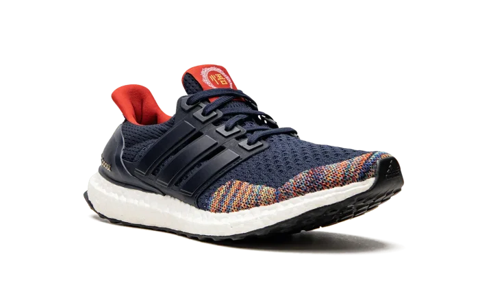 A special release celebrating the Chinese New year in 2015, this Ultra Boost is built with a blue Primeknit and mesh upper with a multicolored hit at the toe and Chinese characters on the tongues.
